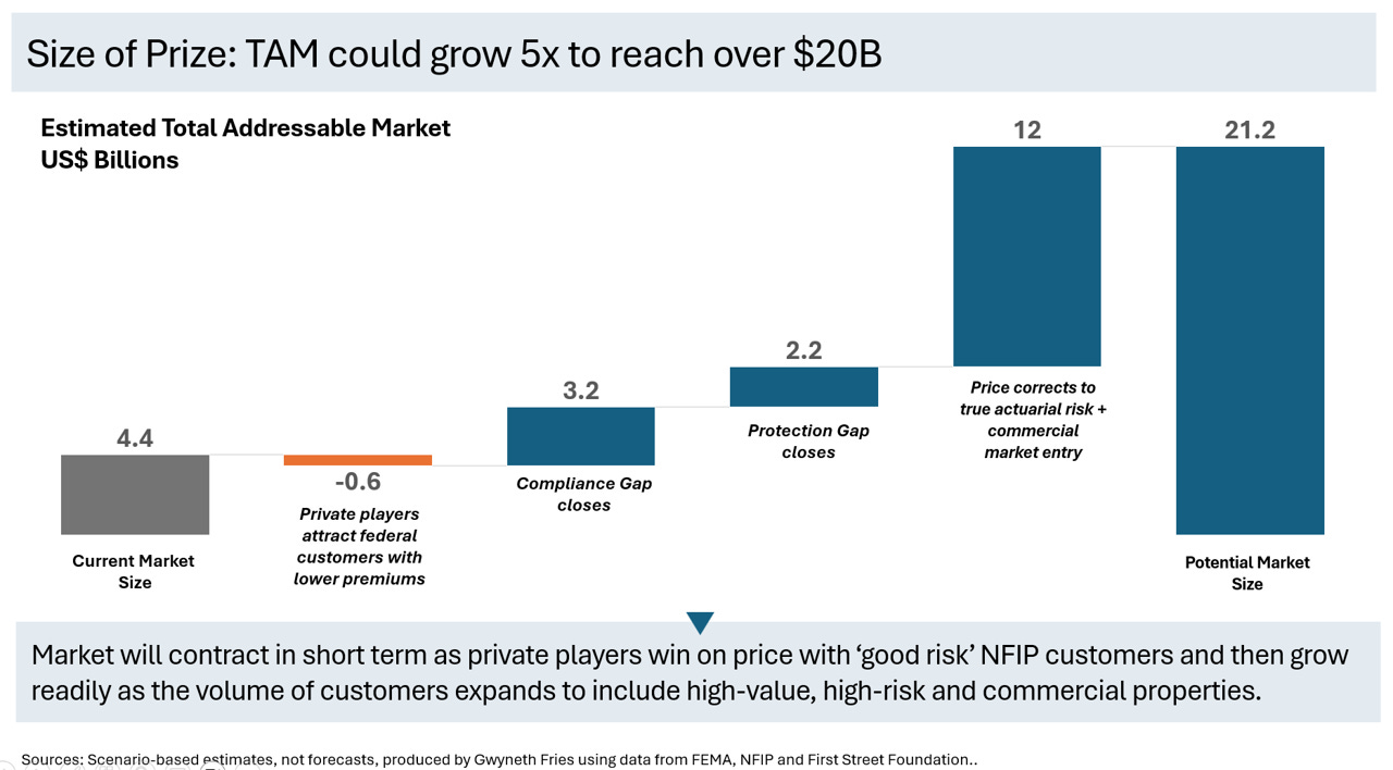 · As private carriers unlock high-value coastal homes and commercial properties, the Total Addressable Market (TAM) could swell from $4B to over $20B.